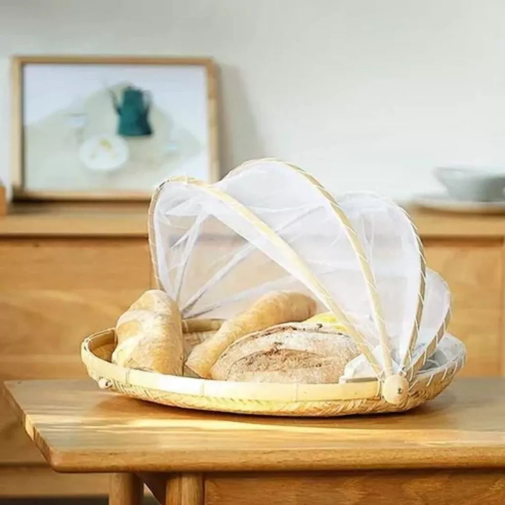 Com design funcional e sofisticado, a Cesta Protetora Premium cobre frutas, pães, pratos e refeições completas de uma só vez.
