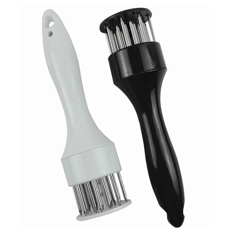 O Amaciador de Carne Prático é fácil de usar com sua alça antiderrapante que também é confortável até para pessoas idosas segurar, mas com lâminas de faca em forma de agulha de pinheiro afiadas que podem cortar até mesmo nos tecidos conjuntivos mais difíceis de carnes, para que você não tenha esperar muito para a carne marinar, pois o tempero será absorvido rapidamente. Também é seguro para o manuseio, uma vez que os materiais são certificados de grau alimentício e relativamente fáceis de lavar à mão, apenas imersos em água morna e sabão.