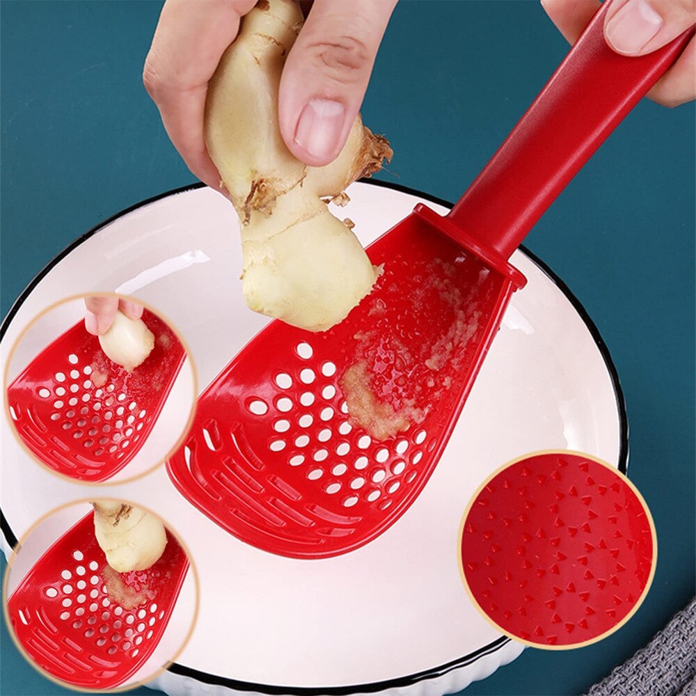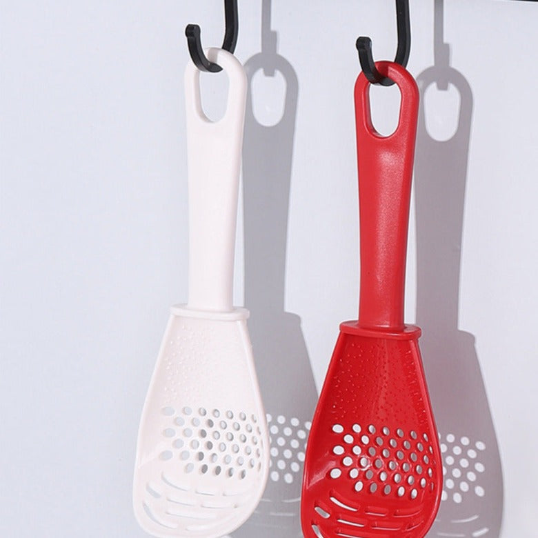 Feito de material PP, a Colher Multifuncional de Receitas é resistente a altas temperaturas, livre de BPA, serve como separador de gema, espátula para cozinhar, ralador, amassar batatas, frutas e muito mais!
