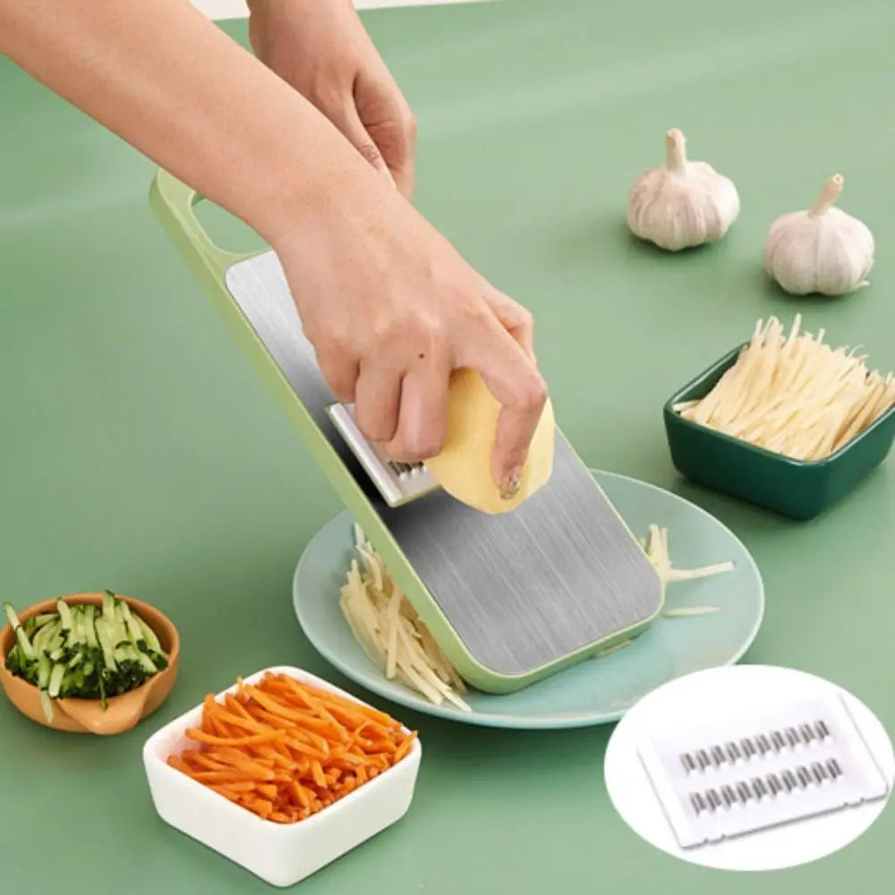 ✔️Funcionalidade Completa: Com o Cortador Multifuncional Prático 5 em 1, você tem tudo o que precisa em um único aparelho! Suas cinco lâminas de aço inoxidável possibilitam cortar, fatiar, ralar e julienar com precisão, tornando a preparação de alimentos mais rápida e eficiente.