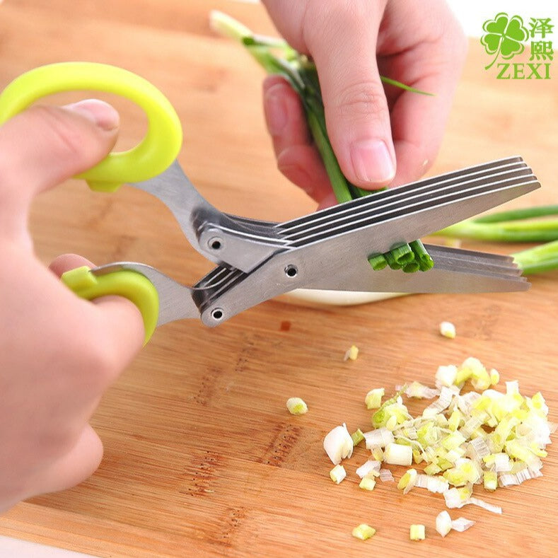 ALTA QUALIDADE: A Tesoura Cortadora de Alimentos possui lâminas de aço resistentes fixam firmemente as 3 ou 5 lâminas afiadas juntas para obter um desempenho uniforme; o cabo de corte ergonômico oferece uma aderência confortável e boa para triturar ou cortar.