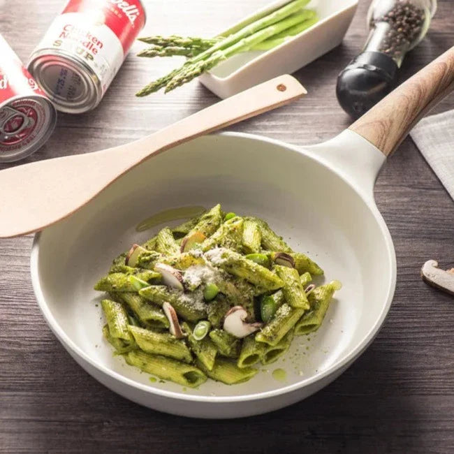 - 🔥 Aquecimento uniforme: Graças à sua tecnologia de cerâmica antiaderente, nossa frigideira aquece de forma rápida e uniforme, garantindo resultados perfeitos em todas as suas receitas.