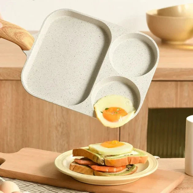 Com um design inteligente que oferece três espaços separados, você pode cozinhar ovos, pães, carnes ou outros alimentos simultaneamente, economizando tempo e sujando menos louça.